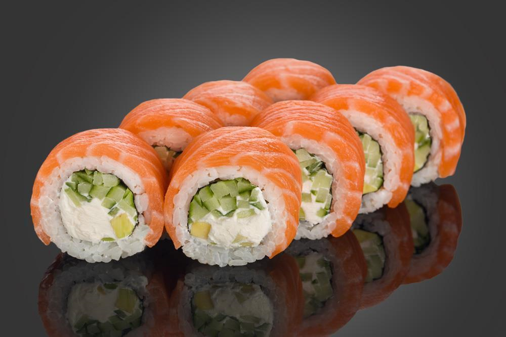 Классический ролл с лососем, сливочным сыром и с огурцом