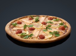 Пицца с соусом Цезарь, курицей, черри, салатом Романо и пармезаном
