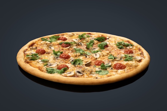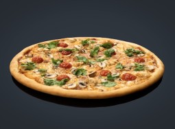 Пицца с соусом Том Ям, курицей, шампиньонами и черри