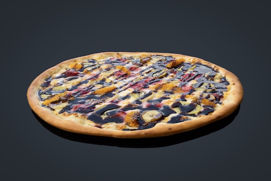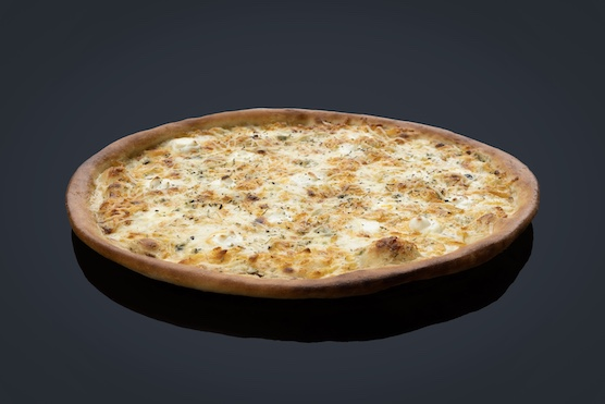 Фирменная пицца с четырьмя сырами: фета, дор блю, пармезан на белом соусе с прованскими травами