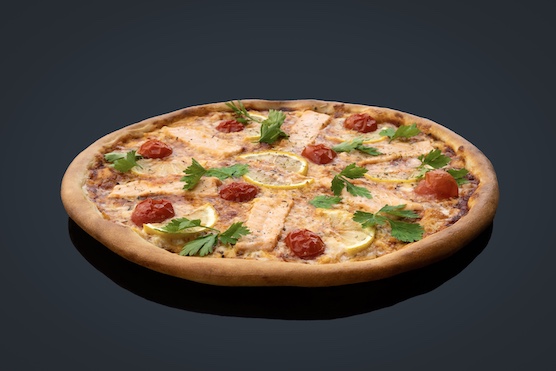 Пицца с соусом Пронто, слабосоленым лососем, лимоном и черри