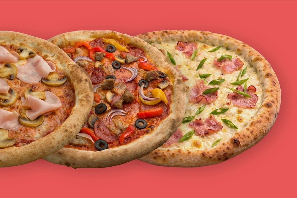 Пицца Мясное Ассорти, Ветчина с грибами, Карбонара классик